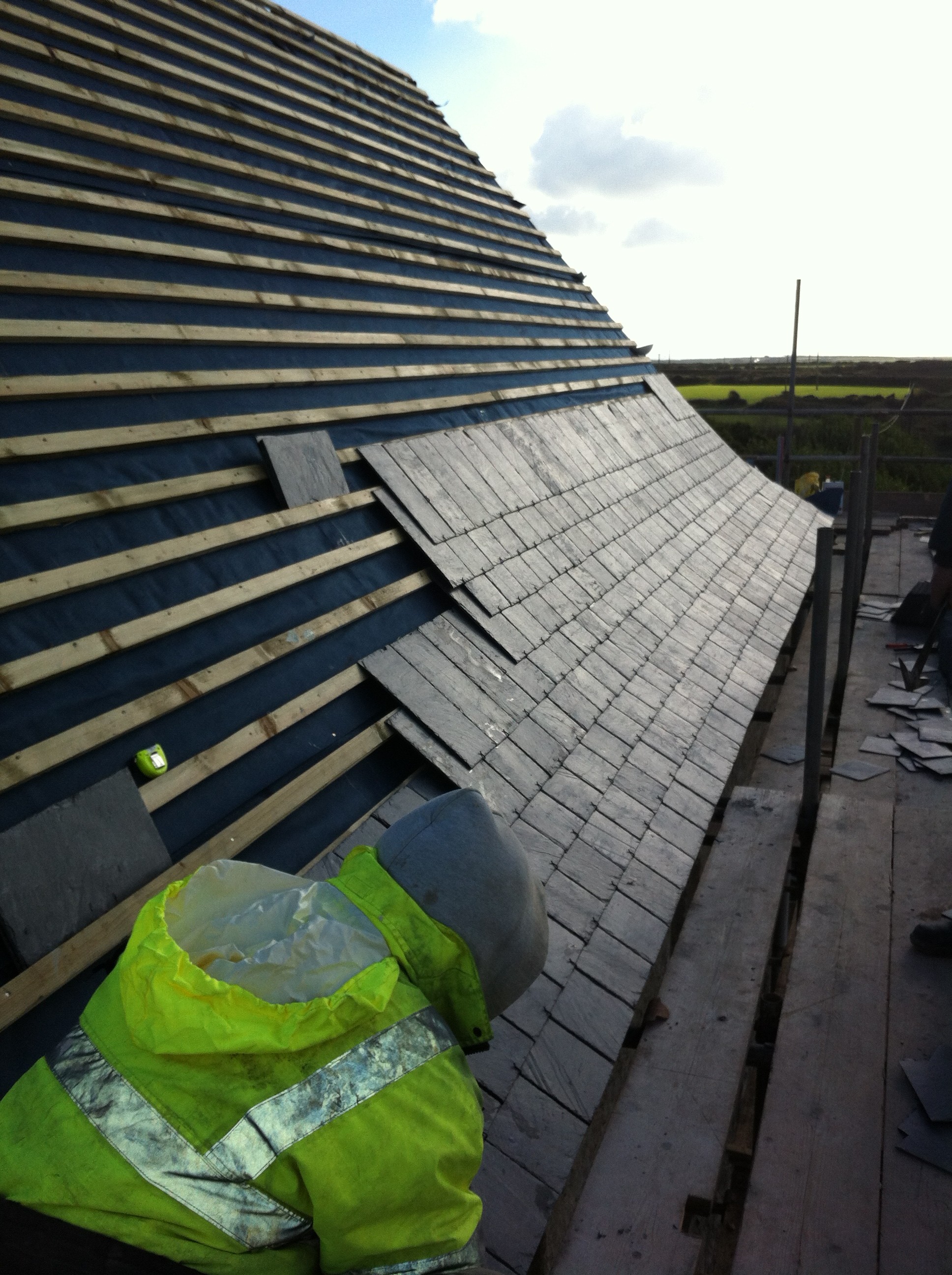 - Due to the existing change of pitch and the difference in the pitch on the various sections of the roof. The vallys had to be carfully set out. Ben and Stuart from www.http://kernowroofing.com/ did us proud once again