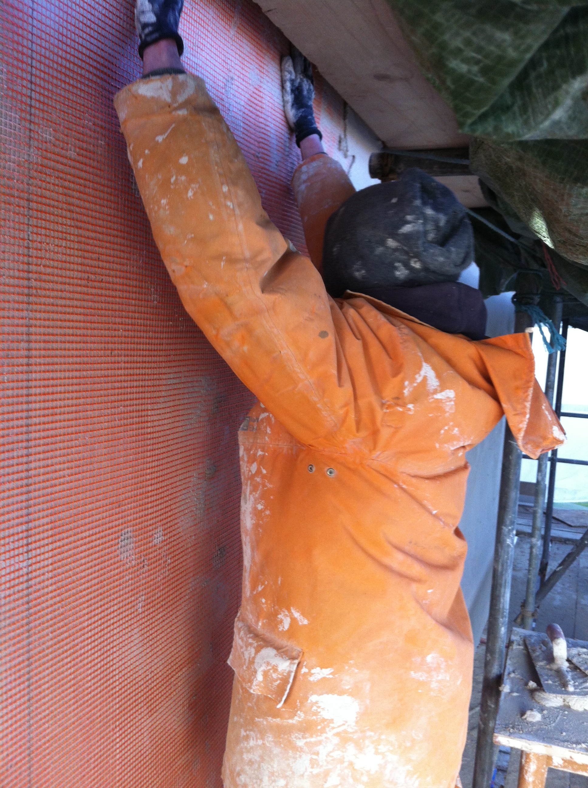 - Care was taken to apply at least 2 layers of the mesh to the window reveals. Also a special wing mesh was used on all external corners.